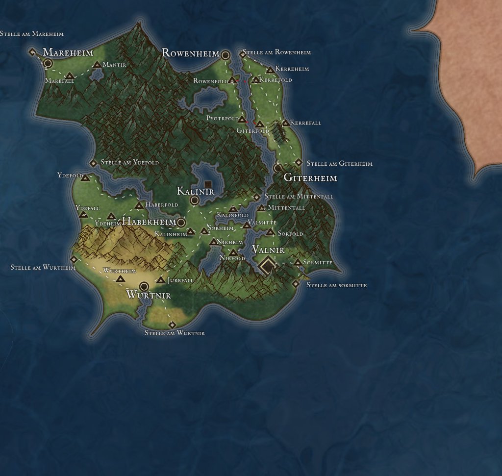 Largest Settlements: Valnir, Wurtnir, Kalinir, Rowenheim.